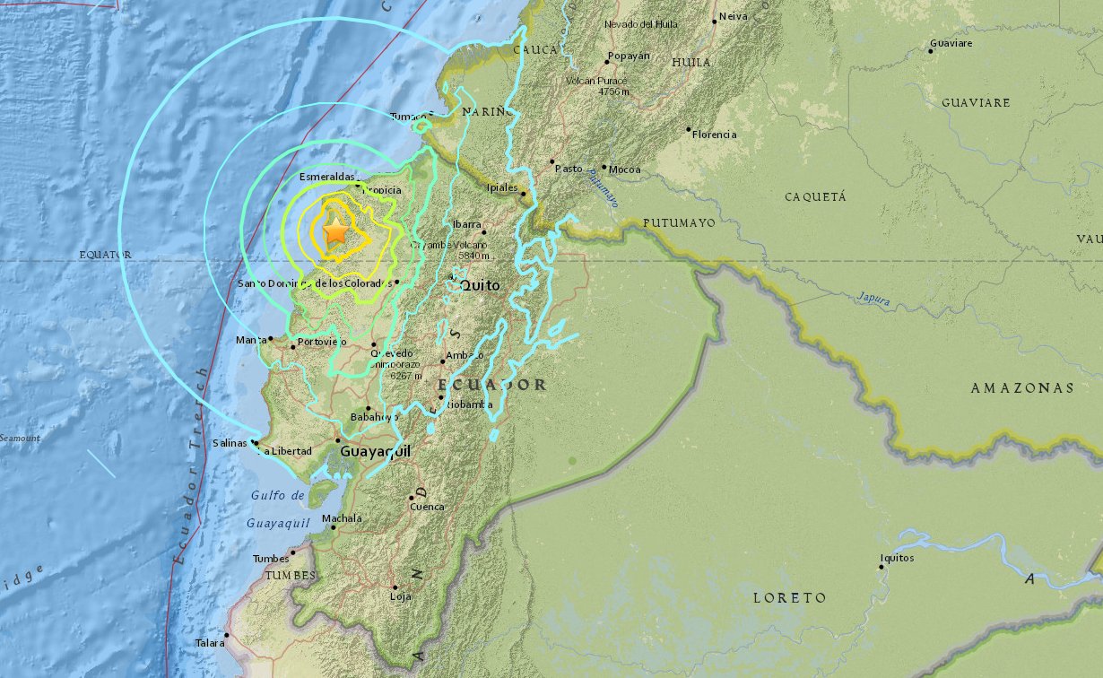 El epicentro se ubicó a 33 kilómetros al noroeste de Rosa Zárate, a una profundidad de 35 kilómetros, según el USGS.sábado, 25 de junio de 2016