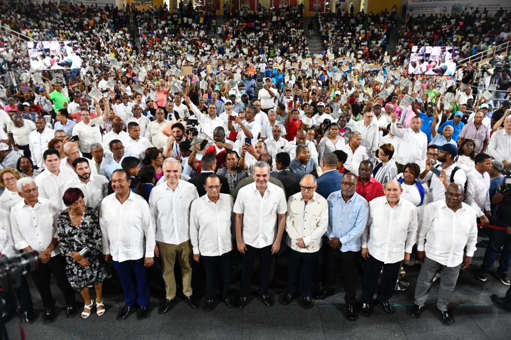 Santo Domingo, R.D., 1 de mayo, 2023.- Con un llamado a que en el país se establezca un nuevo contrato social que garantice mejores condiciones de vida para las y los trabajadores, el ejercicio pleno de la libertad sindical, la negociación colectiva y el diálogo social, las centrales sindicales conmemoraron el Día Internacional del Trabajo, en un acto al que asistió el presidente Luis Abinader, en el pabellón de voleibol del Estadio Olímpico Juan Pablo Duarte.